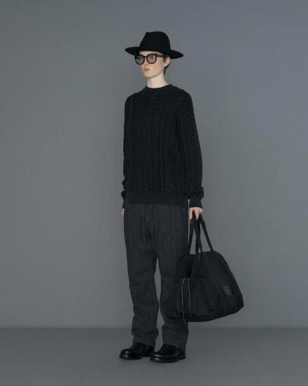 AUTUMN & WINTER 2025 COLLECTIONより、コットン糸をローゲージでケーブル編みにしたクルーネックのプルオーバーニットです。
